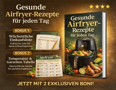 Beim Kauf von „GESUNDE AIRFRYER REZEPTE FÜR JEDEN TAG“ heute erhältst du vollständig GRATIS diese 2 exklusiven Boni, die dein Kochen noch einfacher und leckerer machen: