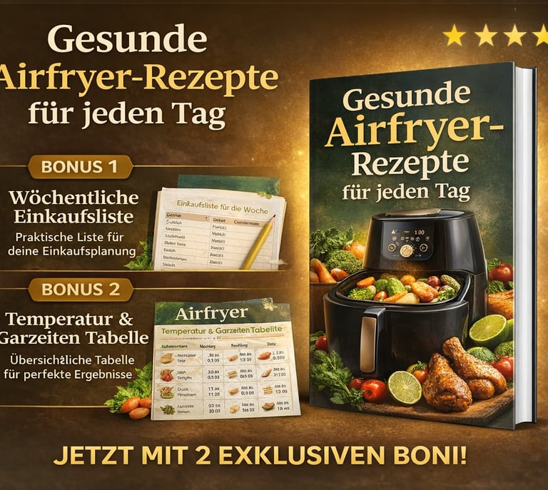 Gesunde Airfryer-Rezepte für jeden Tag ist die praktische Lösung, die dich Schritt für Schritt begleitet und dir zeigt, wie einfach, schnell und lecker gesundes Kochen sein kann.